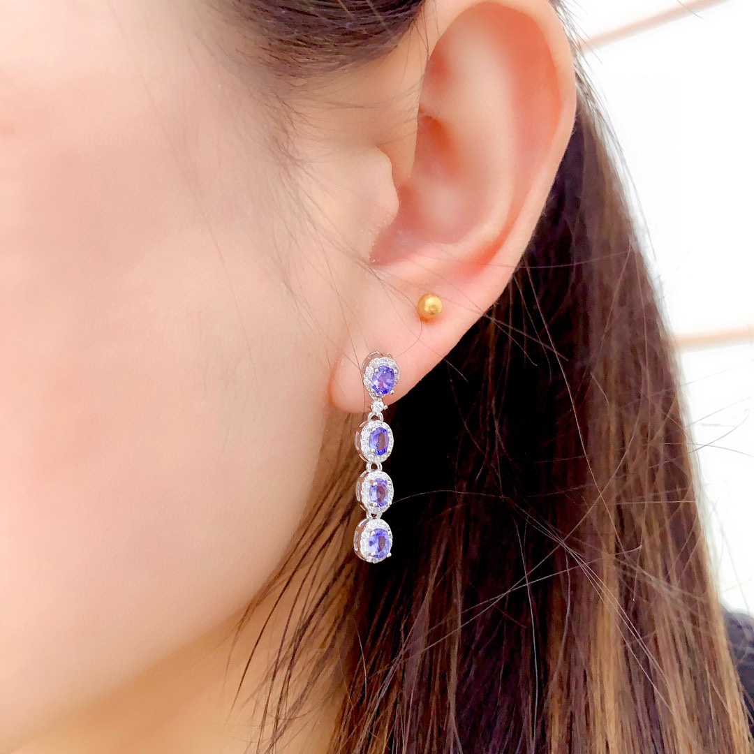 Natural tanzanite earrings are on sale, electric blue, noble and elegant, full body quality, burst sparkle, 925 silver inlaid