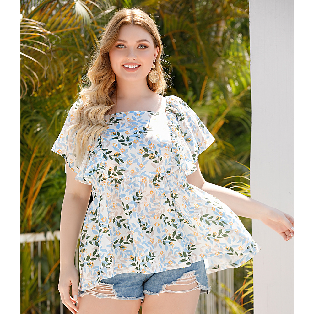 Summer plus-size print blouse for women's fashion
