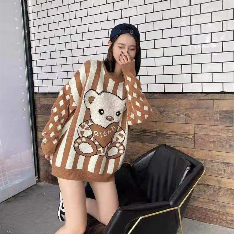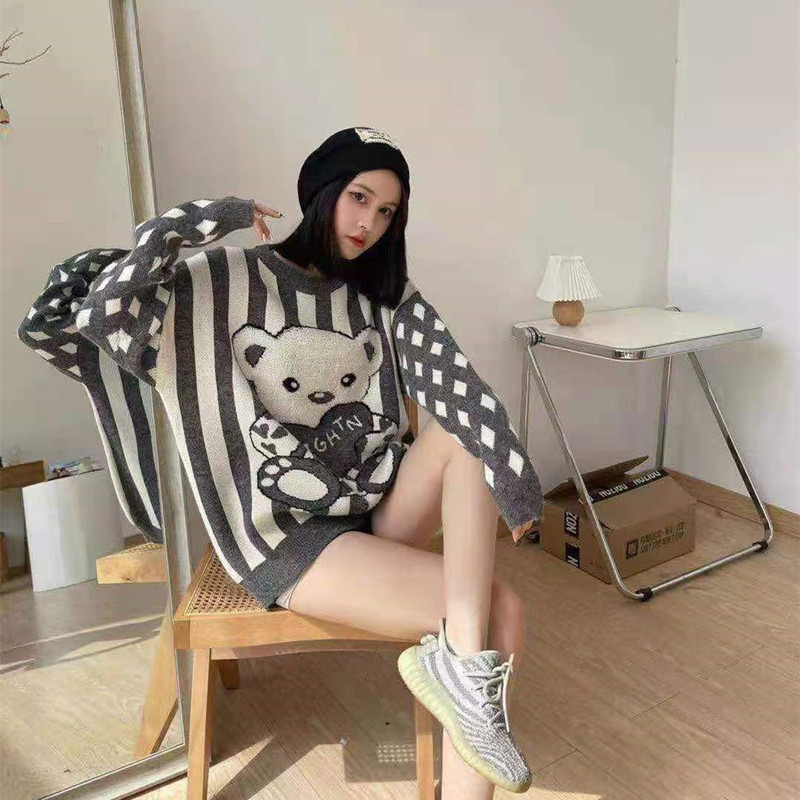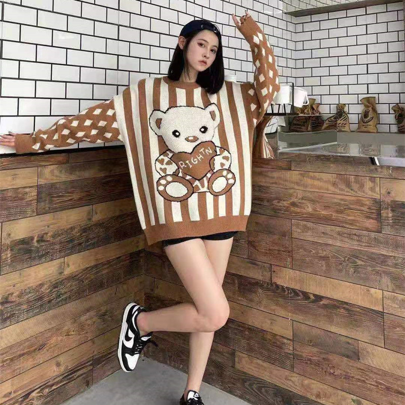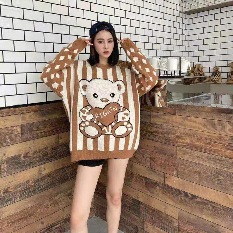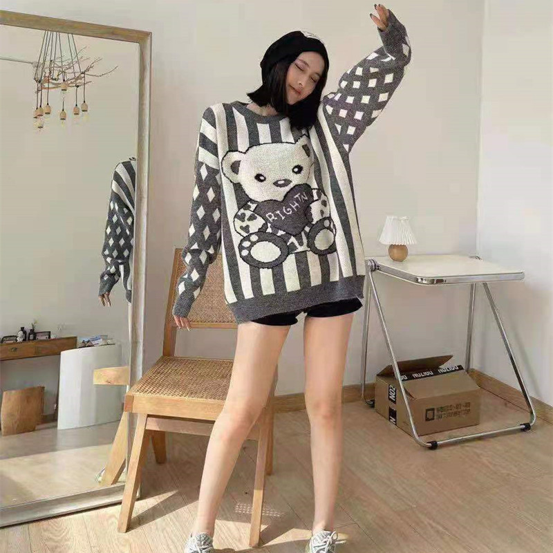 Women Wear Loose Pullover Striped Soft Waxy Bear Sweater