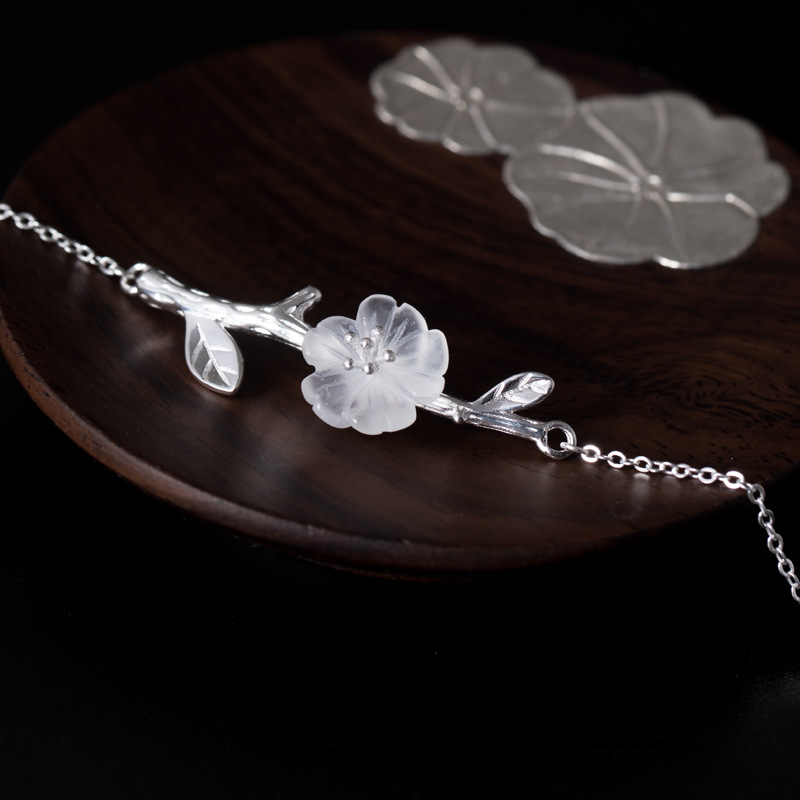 Name: Crystal branch plum blossom chainMaterial: S925 silver natural crystalSize: Flower diameter is about 1.4cm and total branch lengthApproximately 4.4cm chain total length 38+5cm extension cord