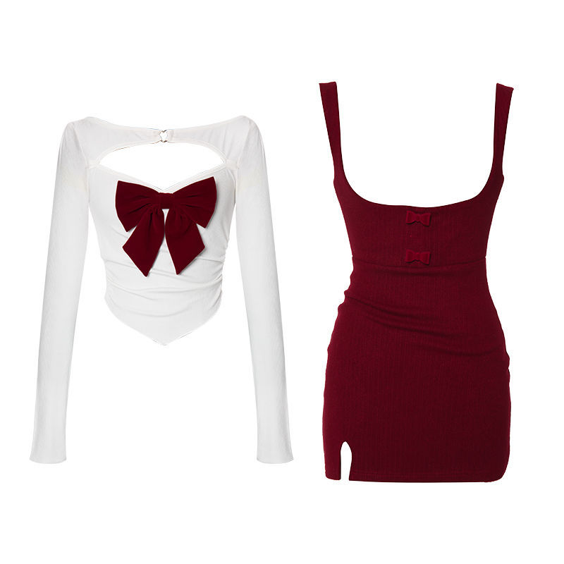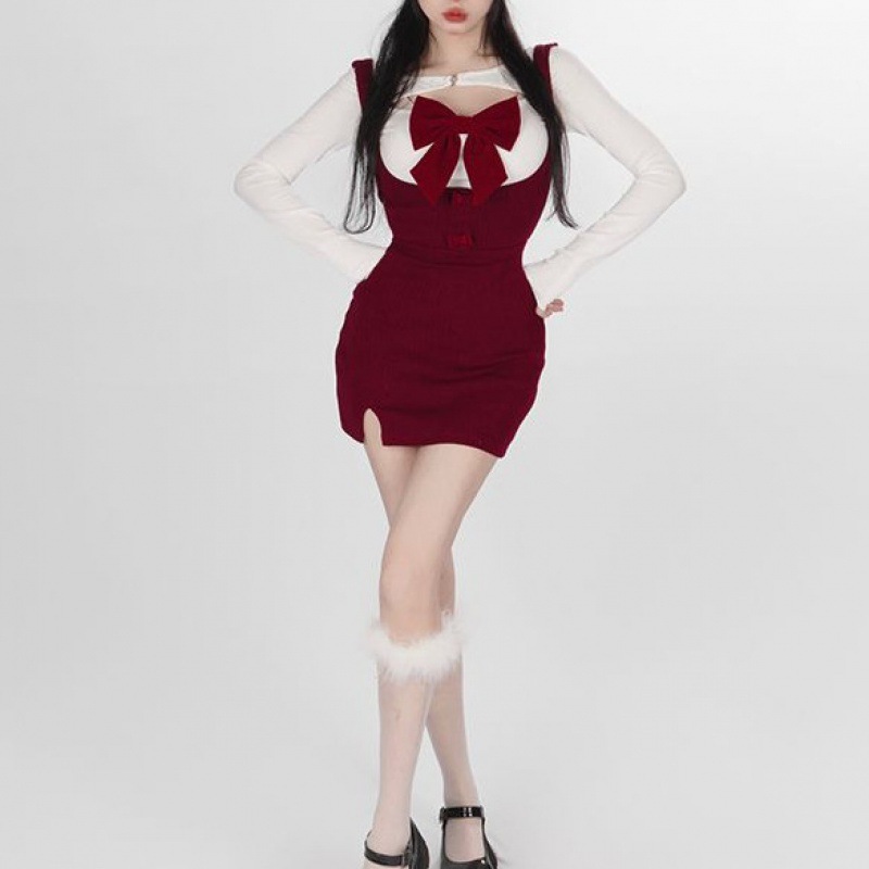 Product information:Color: T-shirt skirt, white T-shirt, red hip skirtSleeve type: flying sleevesSize: S,M,L,XLStyle type: Street hipsterSkirt length: long skirtSleeve length: long sleeveSkirt Category: DressMaterial: Polyester