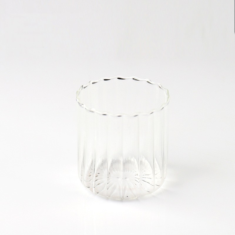 Material: heat-resistant glassGlass thickness: 1.5mm above the bottom, 1.2mm above the bottomStriped cup 250ml: [7X7.5cm]Striped cup 450ml: [8X10cm]
