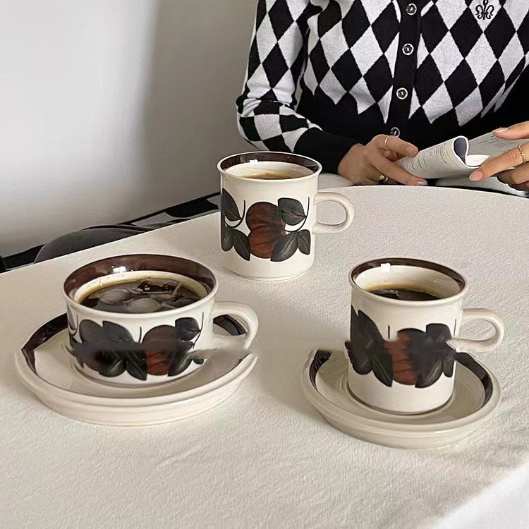 Tall cups and saucers, cup diameter 7, height 7.8cm, capacity about 170ml; small saucer diameter 12.8cm
