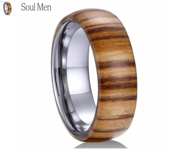 8mm Wood Ring for Men Comfory Fit Tungsten Carbide Wedding Band Inner Color Silver Dome Classic Style Size