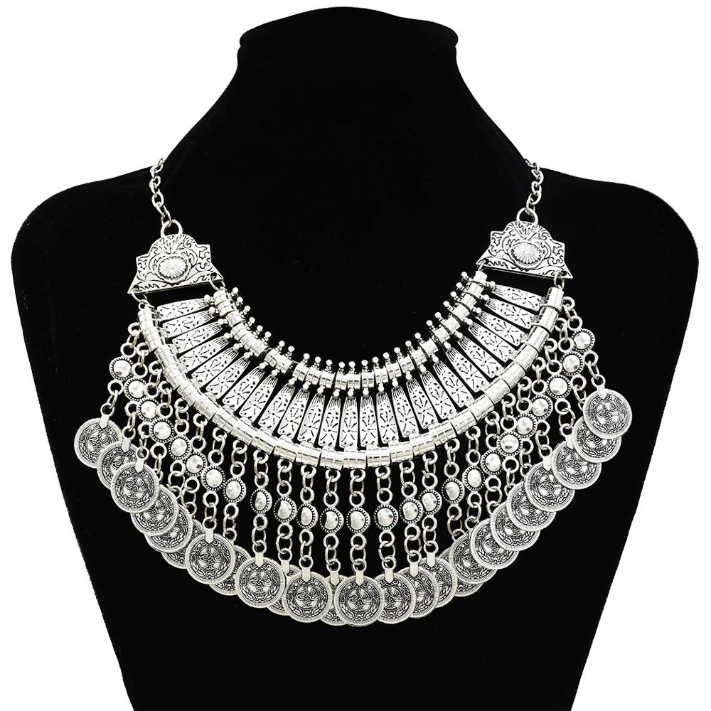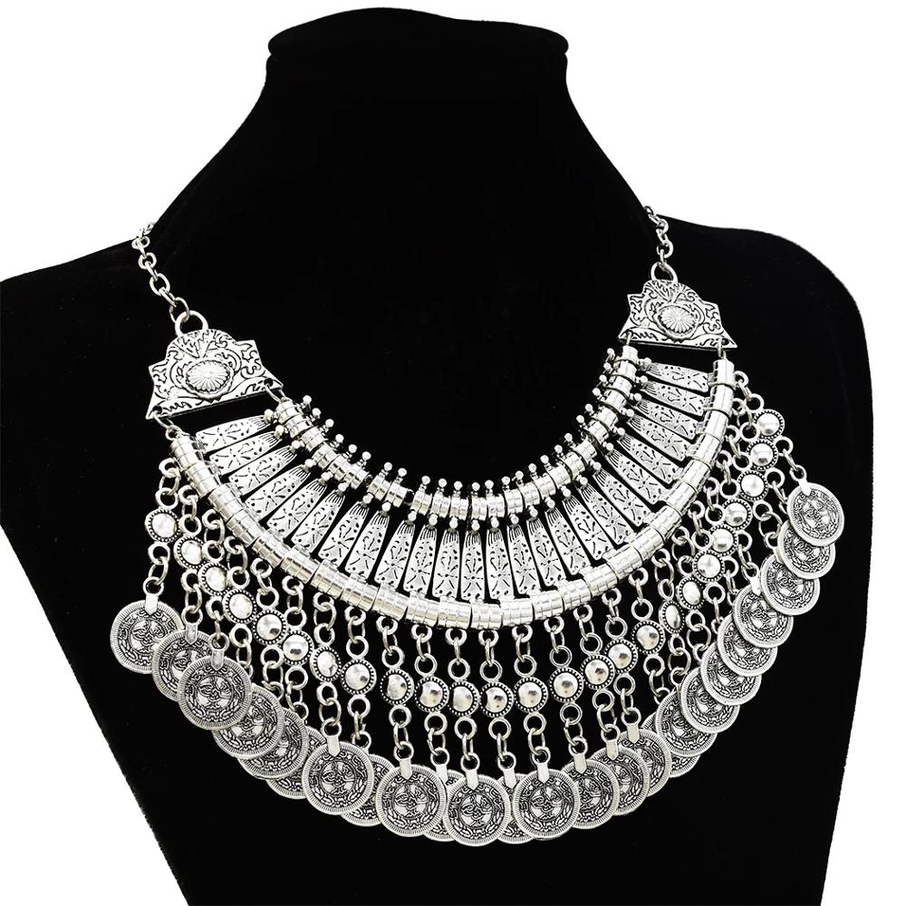 Vintage carved fashion tassel coin necklace