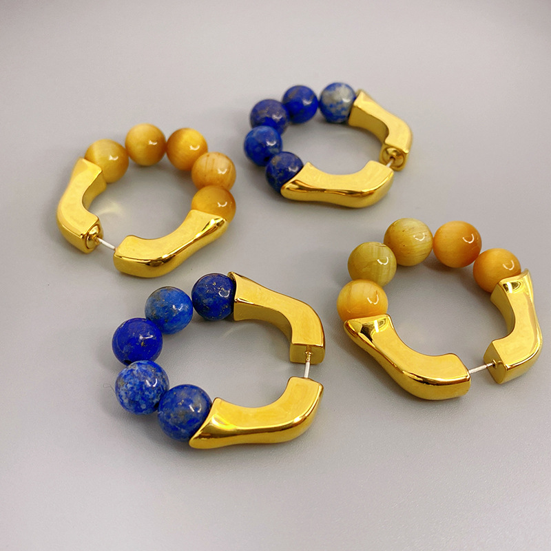 Product information:Treatment Process: Electroplating Color: blue lapis lazuli, yellow tiger shape stone, Pearl Material: Copper Popular elements: Geometry Style: Retro