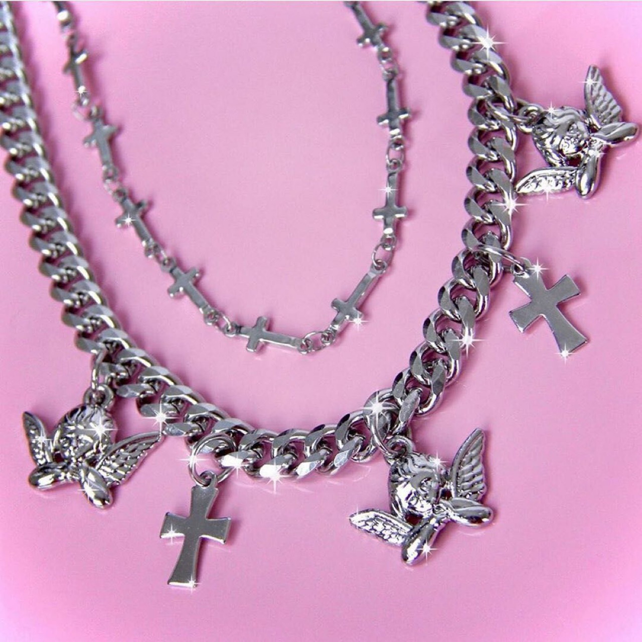 Personalized Hip-Hop Cross Chain Necklace, Street Style Fashion Angel Pendants