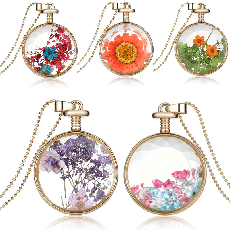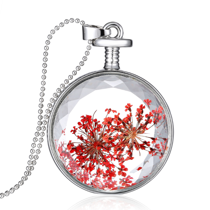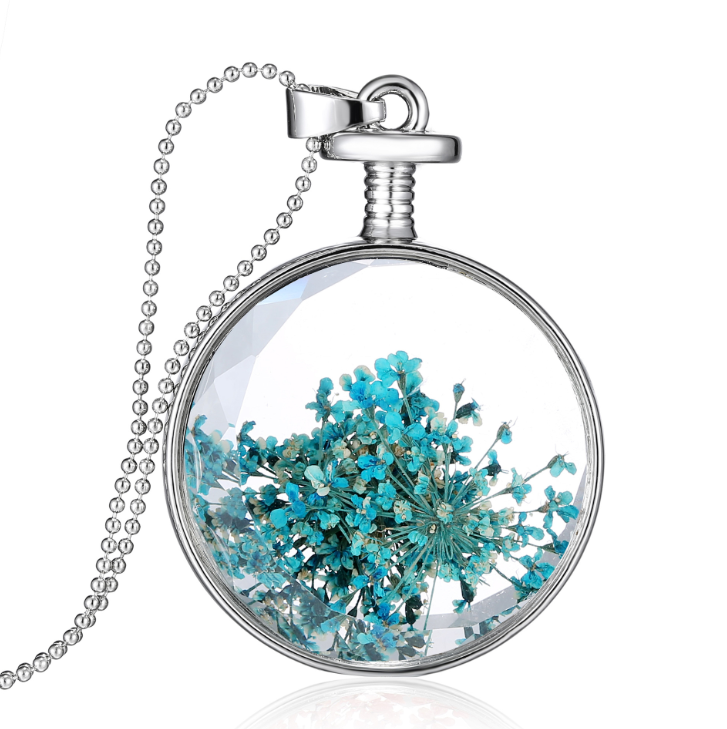 CJZBLXLX06832-Blue:Blue Snowflake+Round Silver Frame Necklace