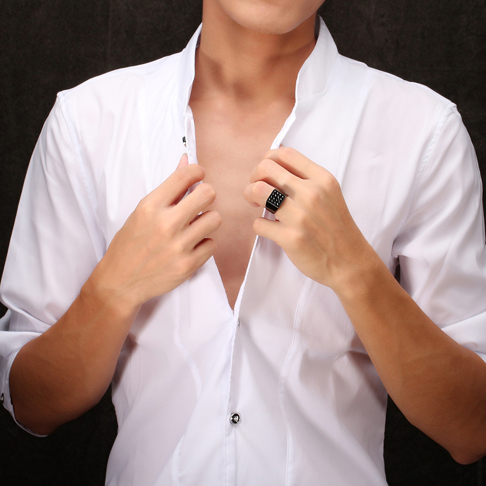 2018 Rinntin Real 316L Stainless Steel Smooth White Male Ring Punk Style Black Color Men Party Rings fashion jewelry