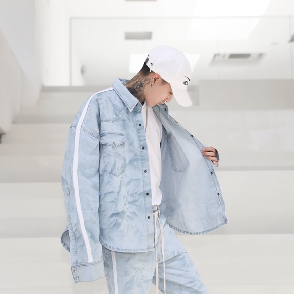 Loose profile mountain wash, old bat sleeves, hip hop, singer, men and women, denim jacket