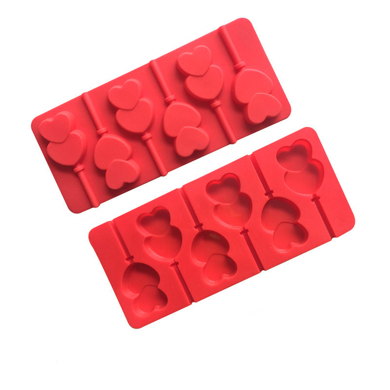 Product Category: Lollipop MouldShape: double heartMaterial: SiliconePurpose: Baking DIYColor: big red (with 6 sticks)Size: 23.7*10.8*1CM
