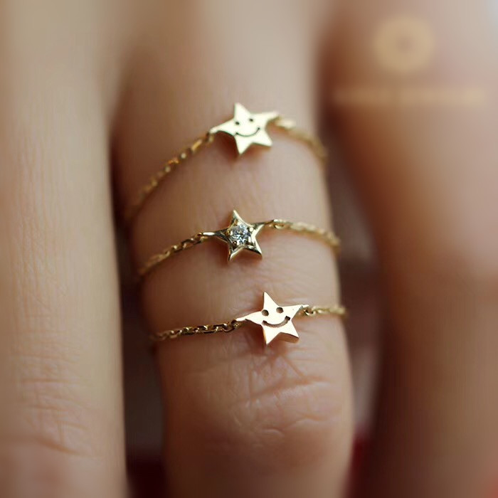 Name: 18K gold smiley face five-pointed star light luxury series fresh diamond ring chain ring adjustable hand size