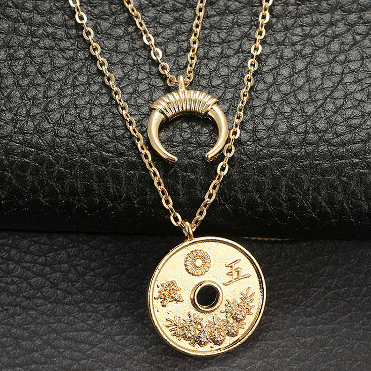 Style: European and AmericanMaterial: AlloyTreatment process: electroplatingStyle: Women'sModeling: geometricChain style: snake bone chainSeries: RetroImage: coins