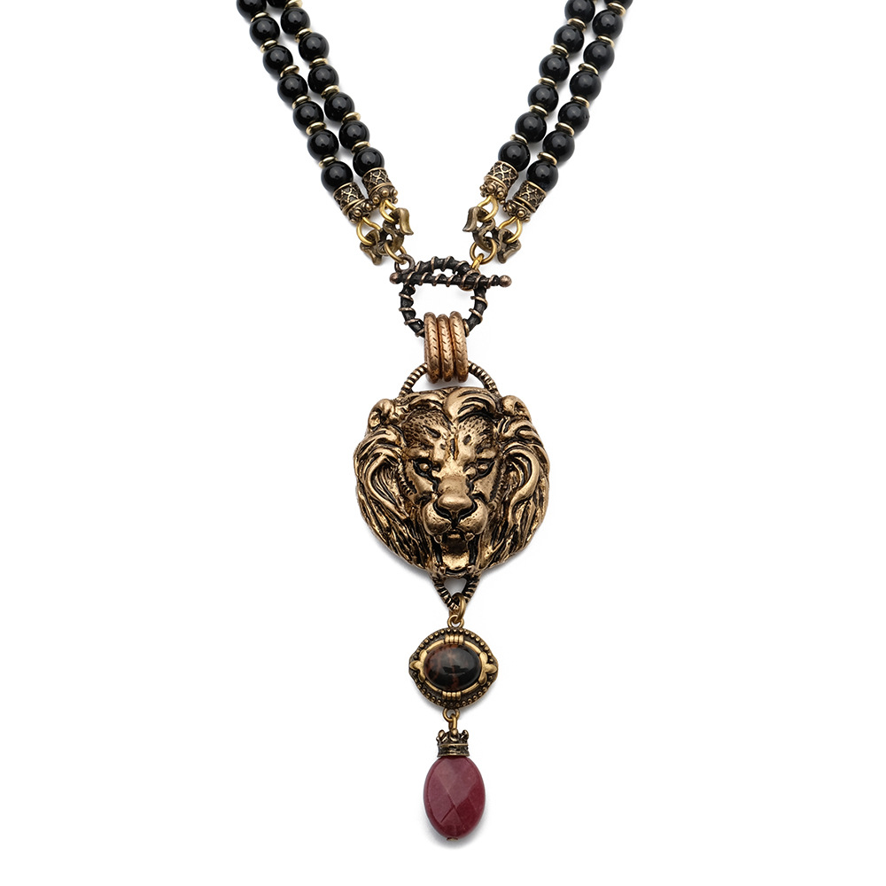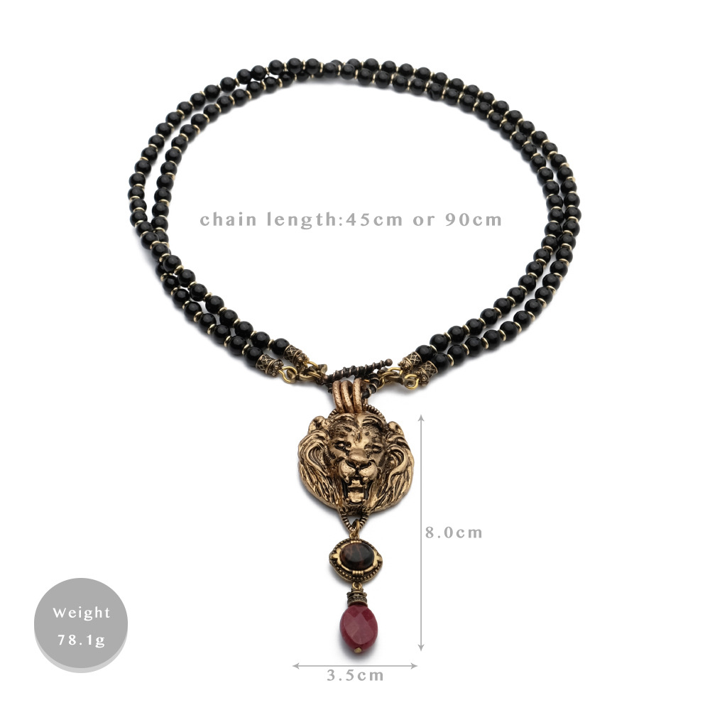 Product Details:Material: CopperChain Style: Ball ChainStyle: RetroPopular element: LionProcessing technology: gemstone inlayProduct Packaging:Necklace * 1