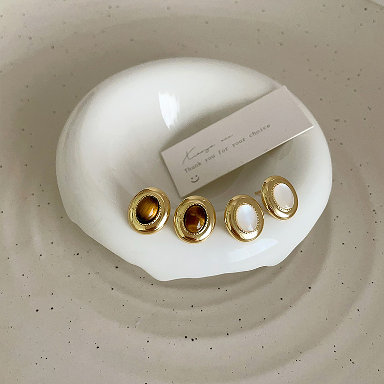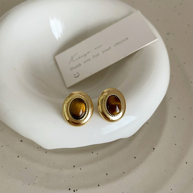 Product information:Color: Tigereye earrings 925 silver needle plated with real gold, opal earrings 925 silver needle plated with real goldApplicable people: womenMaterial: alloyShape: GeometricStyle: ins style