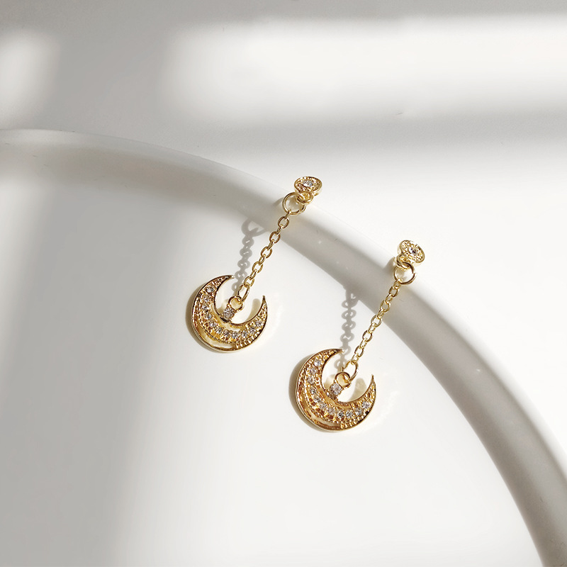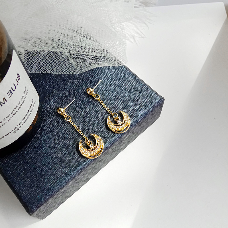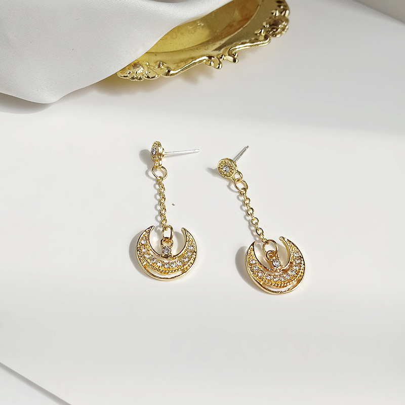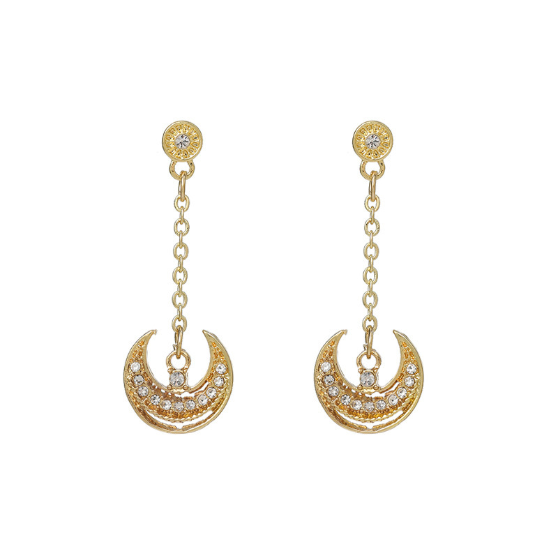 Simple Net Red Temperament Personality Diamond Moon Earrings