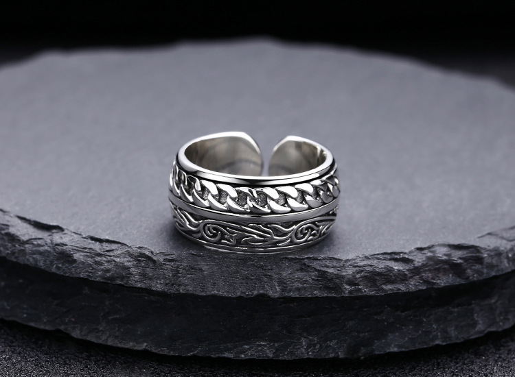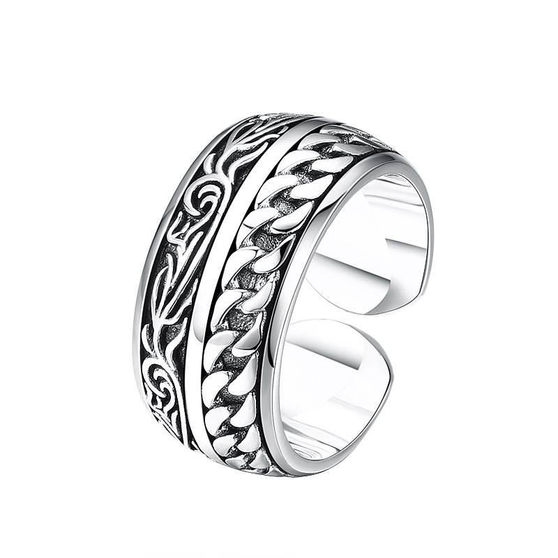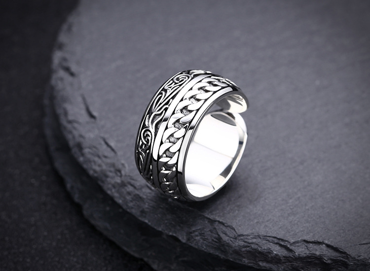 Product information:Type: ring Treatment Process: dyeing black Applicable people: Unisex Size: adjustable opening Style: Retro Material: 925 sterling silver Specification: 10mm wide Size: 15-20#