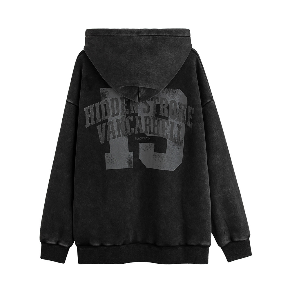 Men's Heavy Washed And Worn Loose Autumn And Winter Fleece-lined Hooded Pullover
