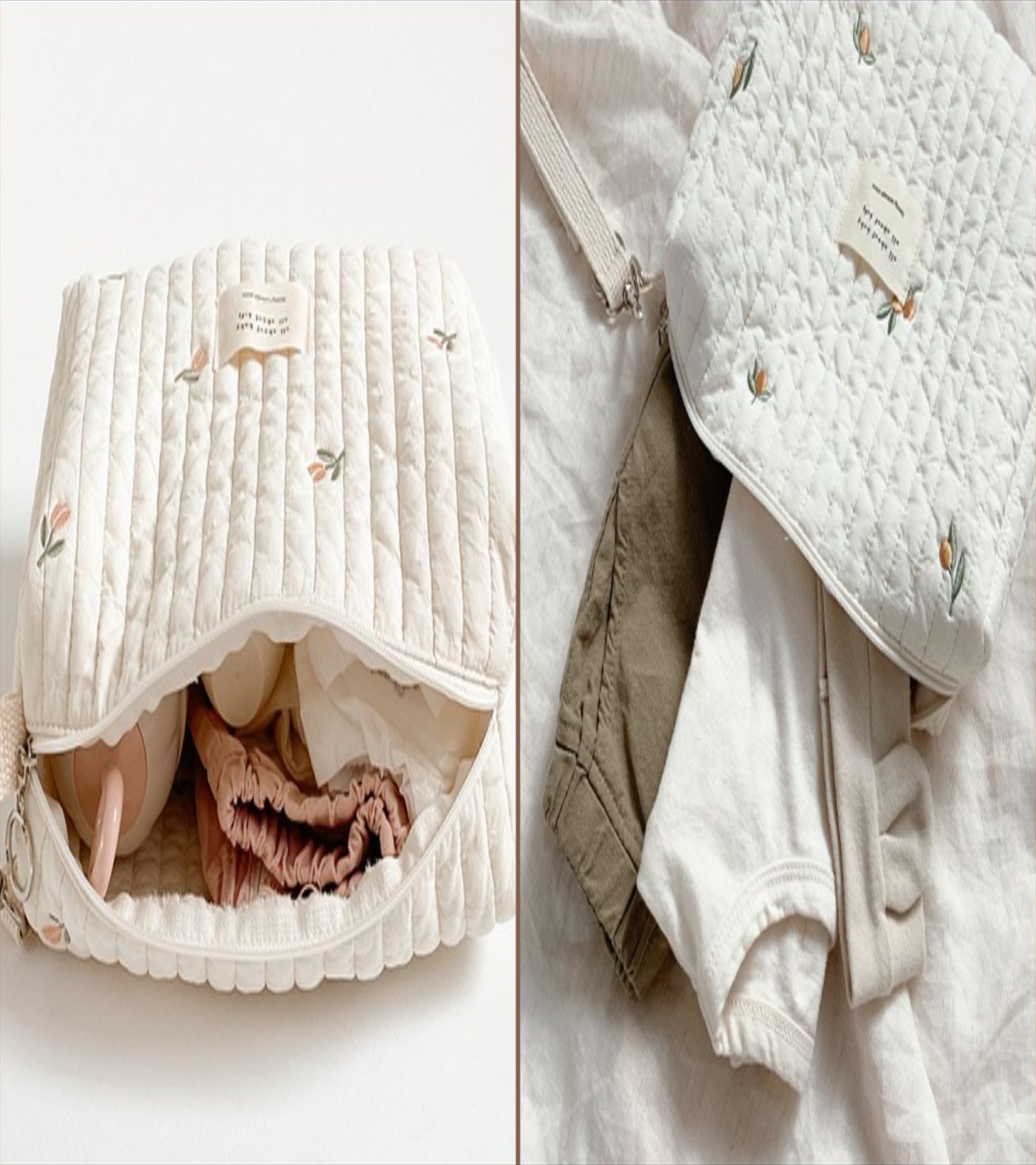 Color: Beige Bear Embroidered Mommy Bag, Beige Olive Embroidered Mommy Bag, Beige Tulip Embroidered Mommy Bag