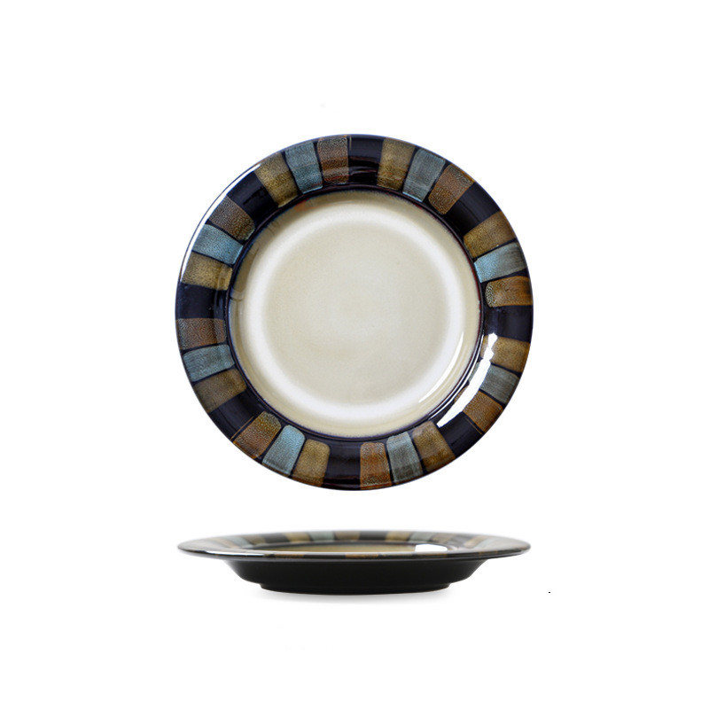 Product Category: PlateMaterial: PorcelainPattern: plainShape: roundColor: Retro 7.8-inch plate with large lattice edge (20cm)