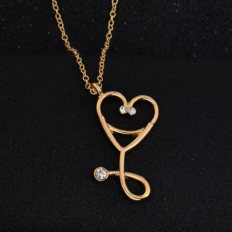 Material: AlloyTreatment process: dripping oilCategory: NecklaceStyle: coupleModeling: StethoscopePendant material: alloyColor: xl277, xl298Name: European and American new alloy drip oil stethoscope necklaceSize: 2.0 * 4.1cm