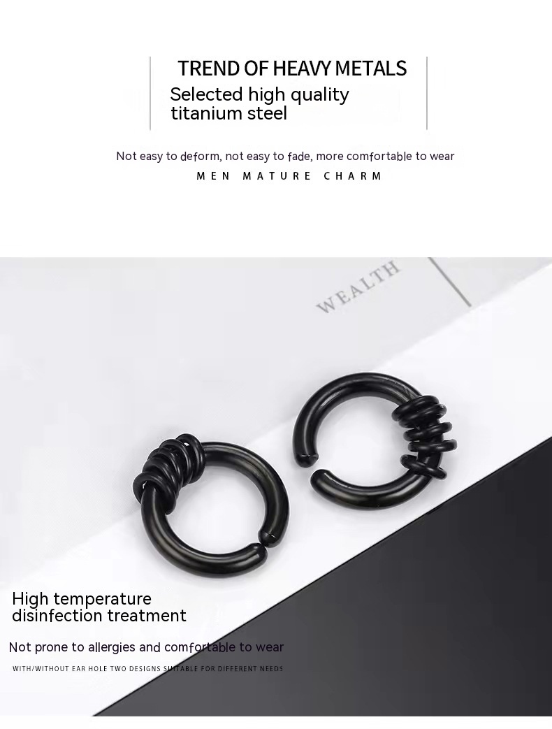 Color: 2.5*12 steel color n ear clip five rings single, 2.5*12 black round wire n ear clip five rings single, 2.5*12 gold n ear clip five rings single, 2.5*12 steel color n ear clip round beads single, 2.5*12 black round wire n ear clip round beads single, 2.5*12 gold n ear clip round beads single