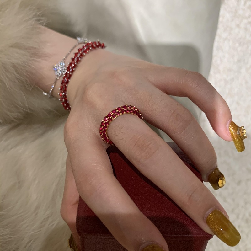 Product information:Type: Ring Treatment Process: Electroplating Color: Pomegranate full Diamond Row Diamond Ring Size: no.7, no.8, no.9, no.6 Style: Women's Material: Copper Shape: Geometry Style: affordable luxury style