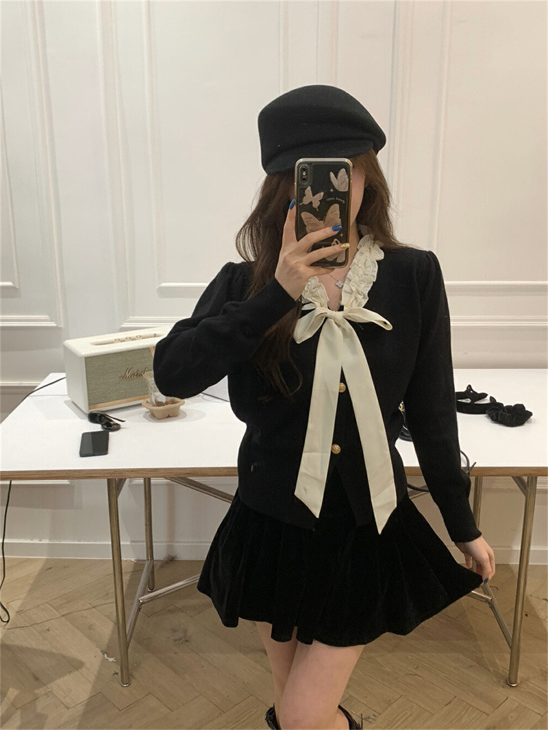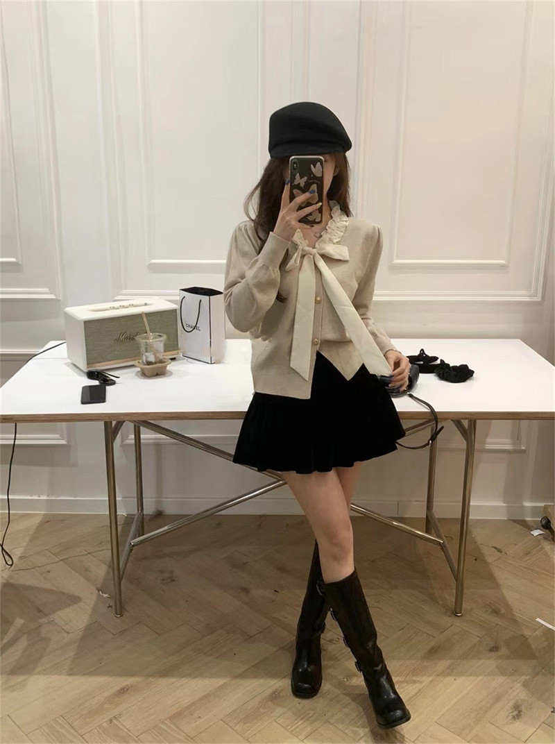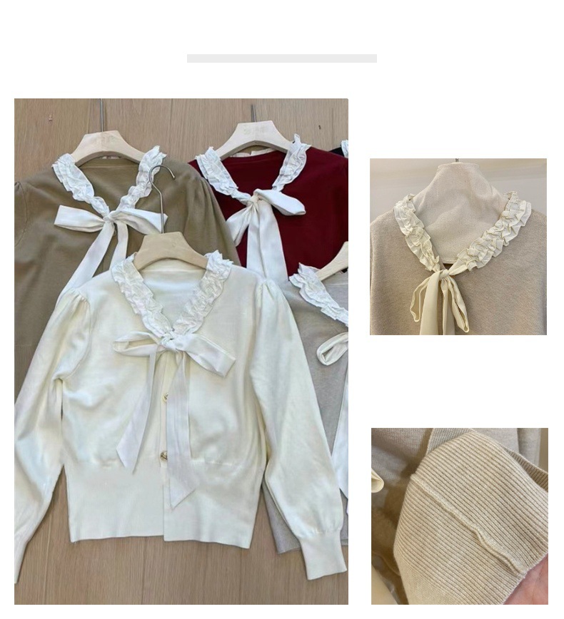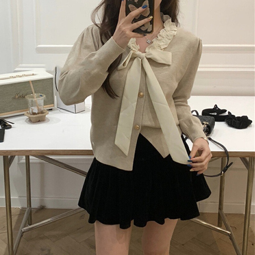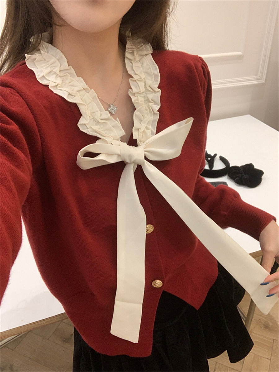 Color: red bow tie small cardigan, white bow tie small cardigan, flower rice bow tie small cardigan, khaki bow tie small cardigan, black bow tie small cardigan