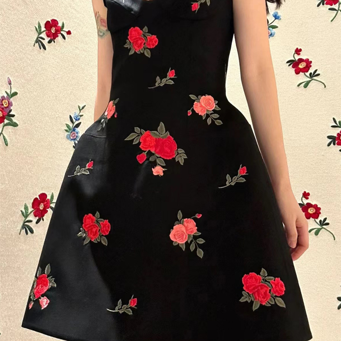 Product information :Fabric name: acrylic fiberPattern: solid colorStyle: suspendersCombination form: single pieceSkirt length: short skirtColor: black (floral), blackSize Information:Size: S,M,LPacking list:Dress *1