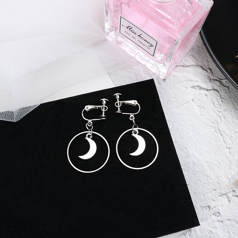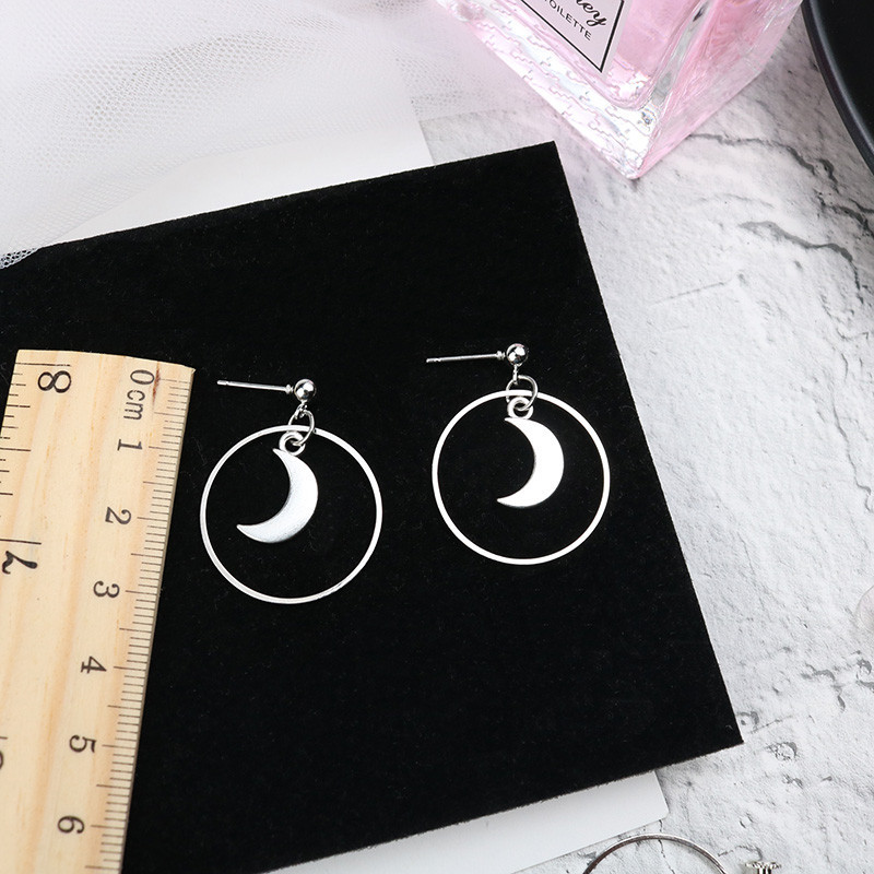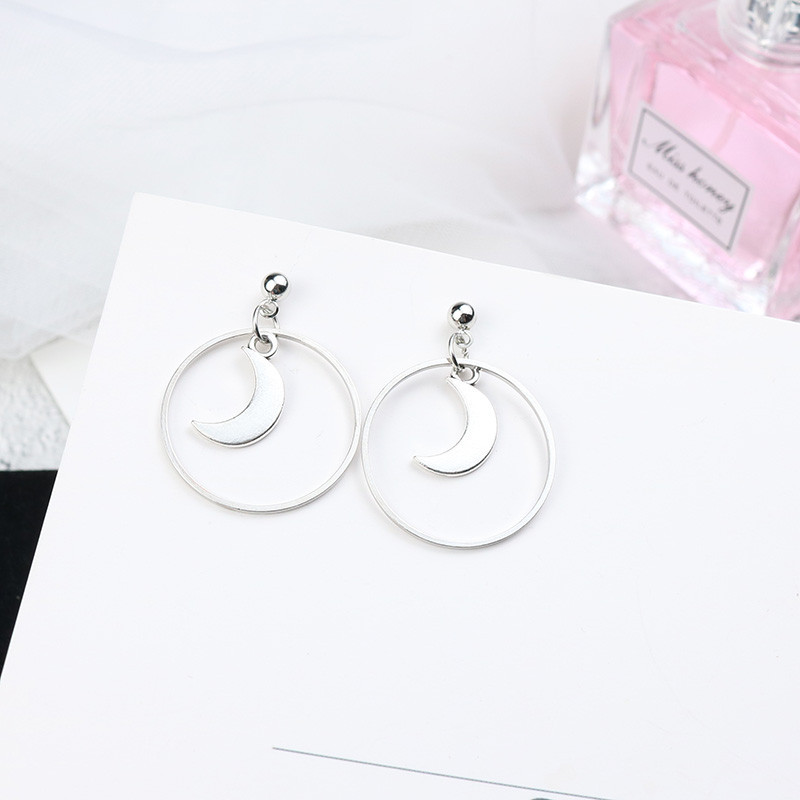 Korean Girl Heart Moon Circle Earrings Simple Temperament Ring Crescent Earrings Geometric Earrings Female