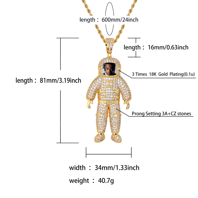 Style: European and AmericanBrand: JinaoStyle: UnisexModeling: AstronautTreatment process: micro-inlaid electroplatingColor: gold, silver
