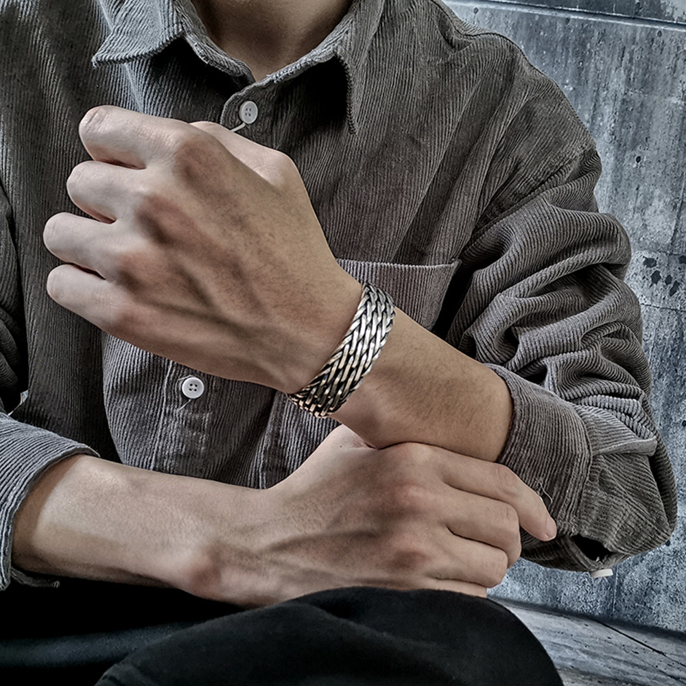 Product Details:Material: SilverApplicable gender: maleColor classification: SilverSize: about 14mm wide, about 3mm thickPackage Contents:Bracelet X1