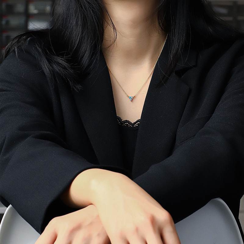 Material: brassTreatment process: electroplatingExtension chain: 10cm or lessCircumference: 21cm (inclusive) -50cm (inclusive)Color: golden blue zircon necklace