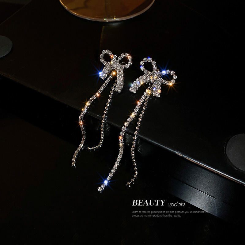 Product information:Material: AlloyStyle: Women'sStyle: BowknotProcessing technology: diamondColor: Silver Needle-Bowknot TasselPackage Contents:Alloy earrings X1 pair