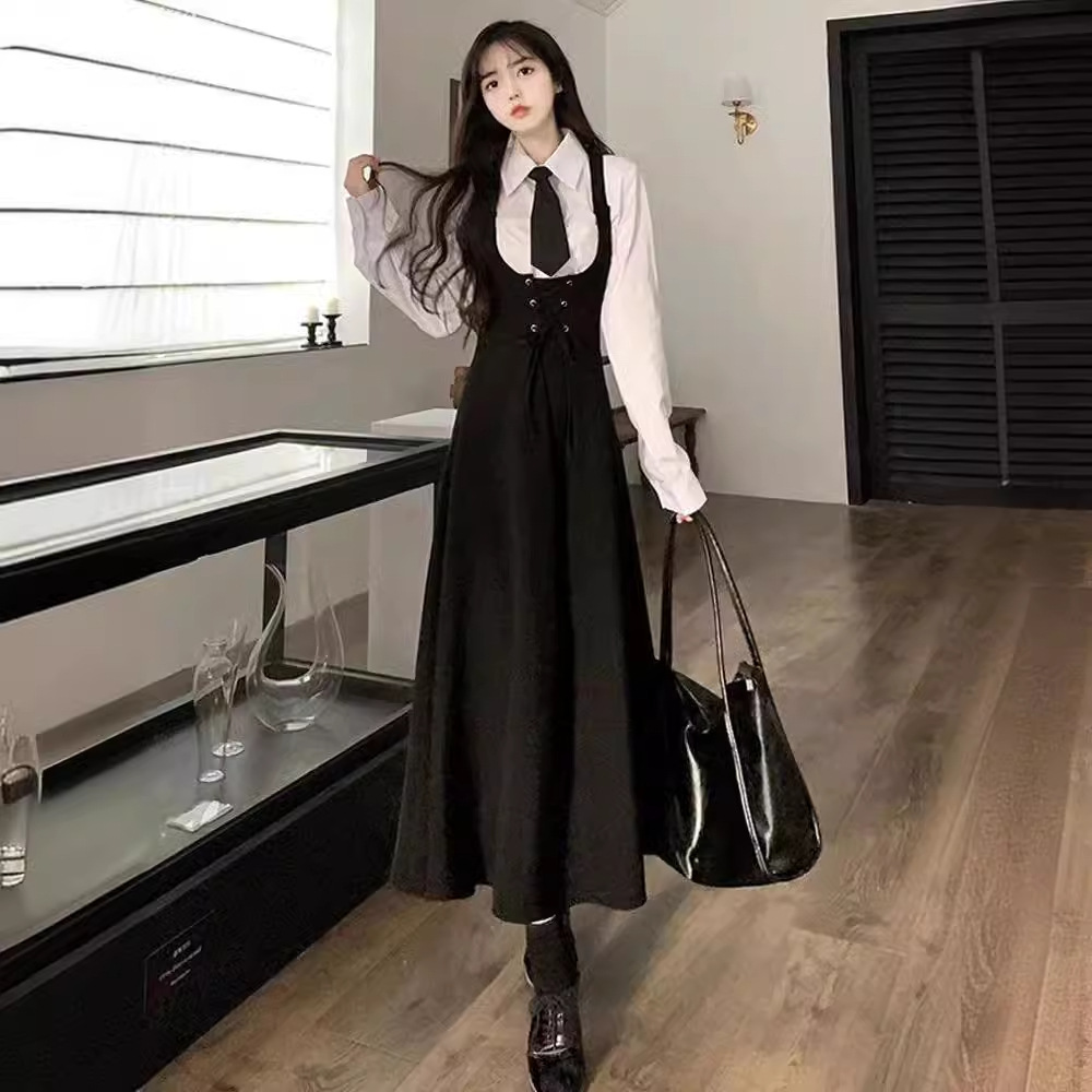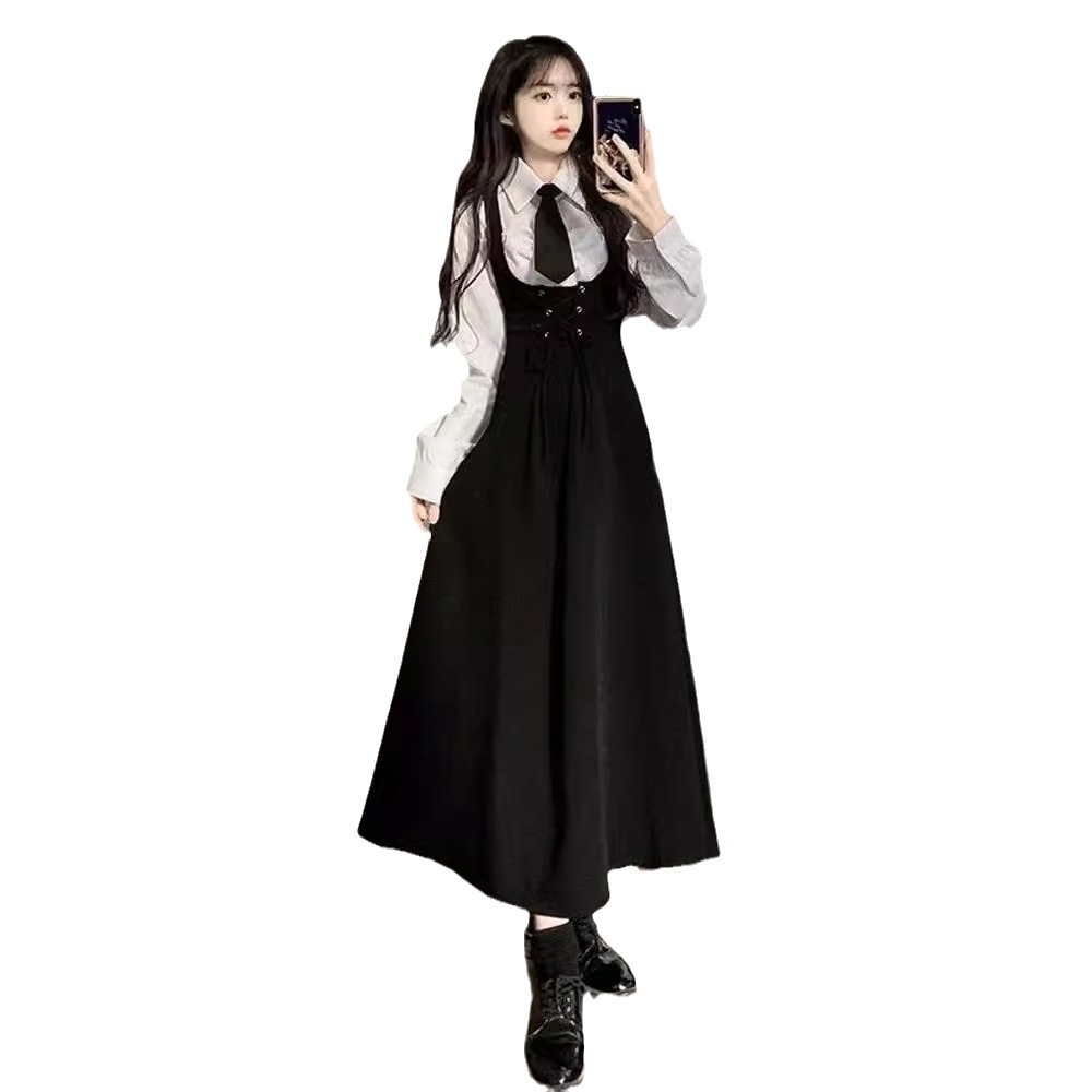 Product information:Pattern: solid color Fabric name: Polyester Color: black slip dress white shirt tie [suit]] Size: S,M,L,XL Applicable Gender: Female Style: college style