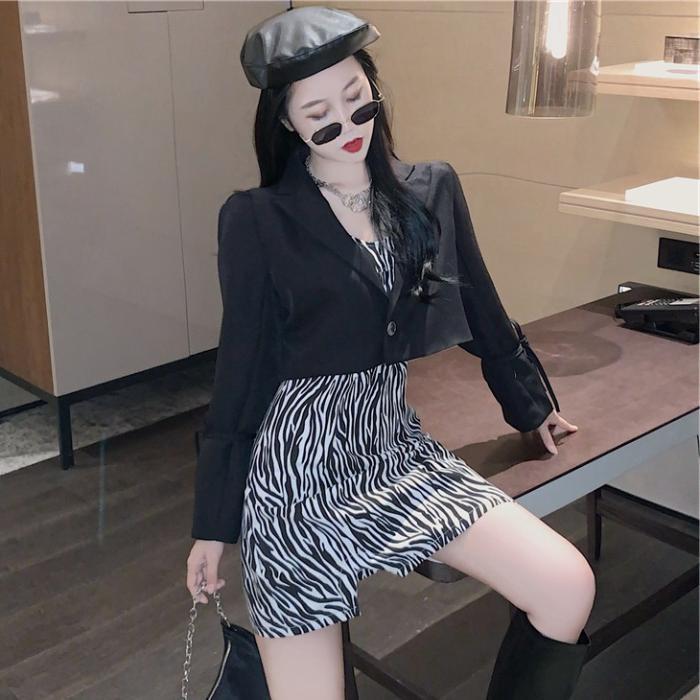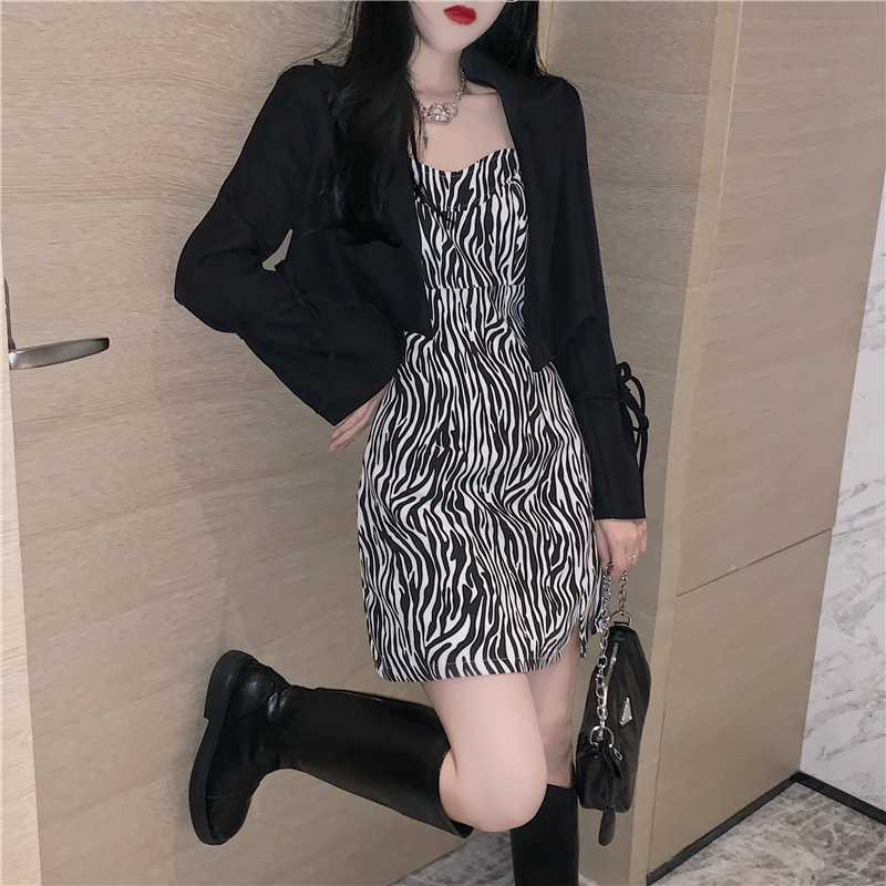 Color: black suit, khaki suit, white suspender, khaki suspender