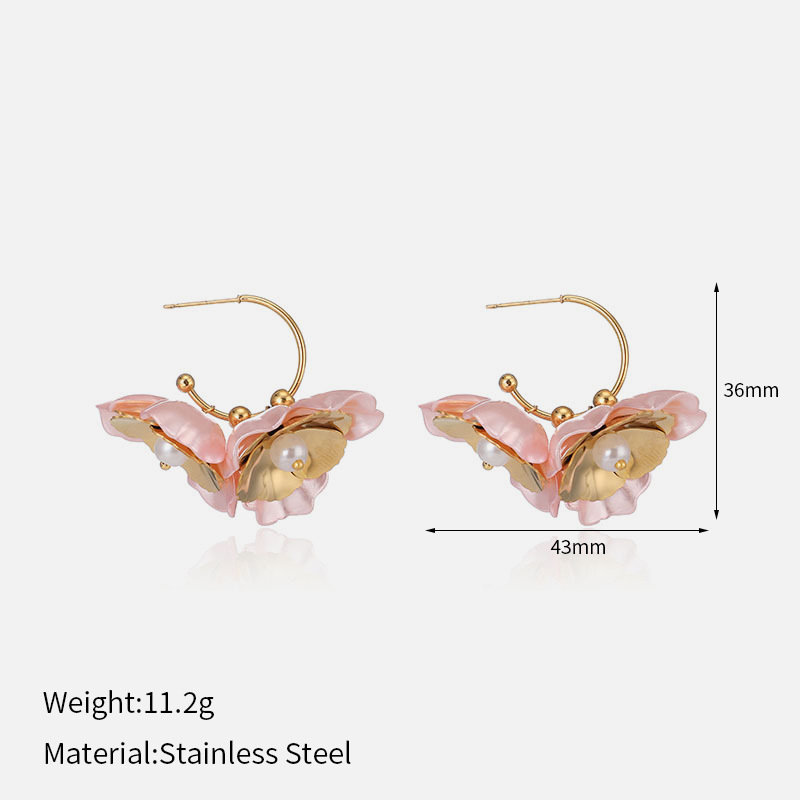 Product information:Treatment Process: Electroplating Color: white flowers, pink flowers, blue flowers Applicable population: Female Material: Stainless steel Shape: Flower
