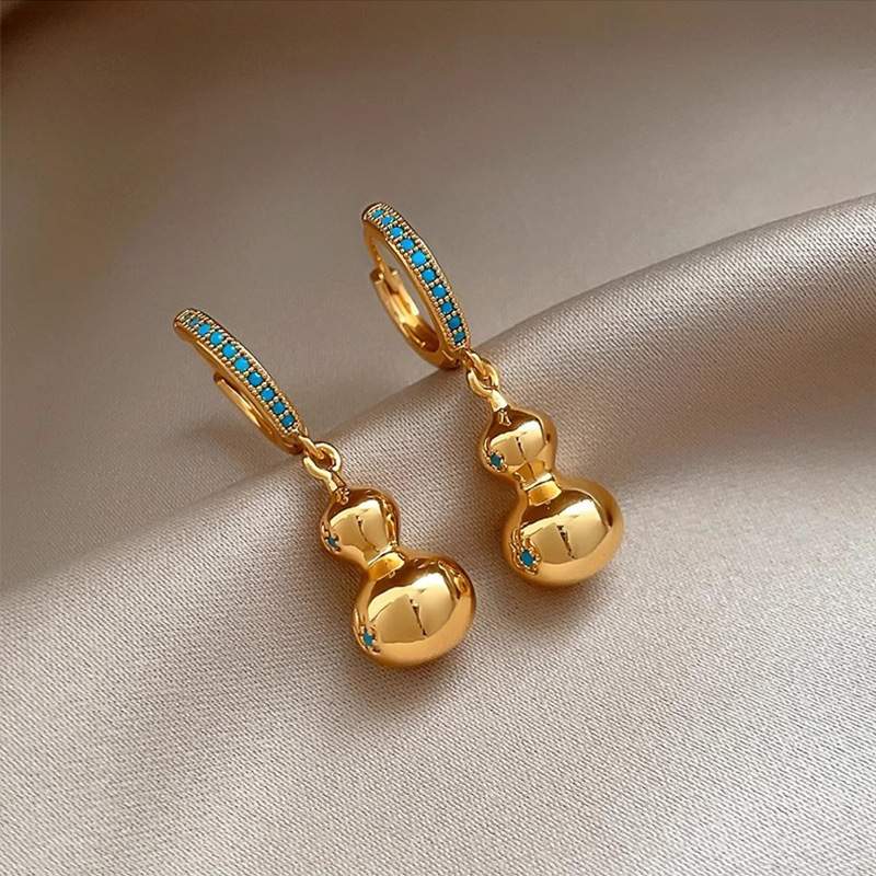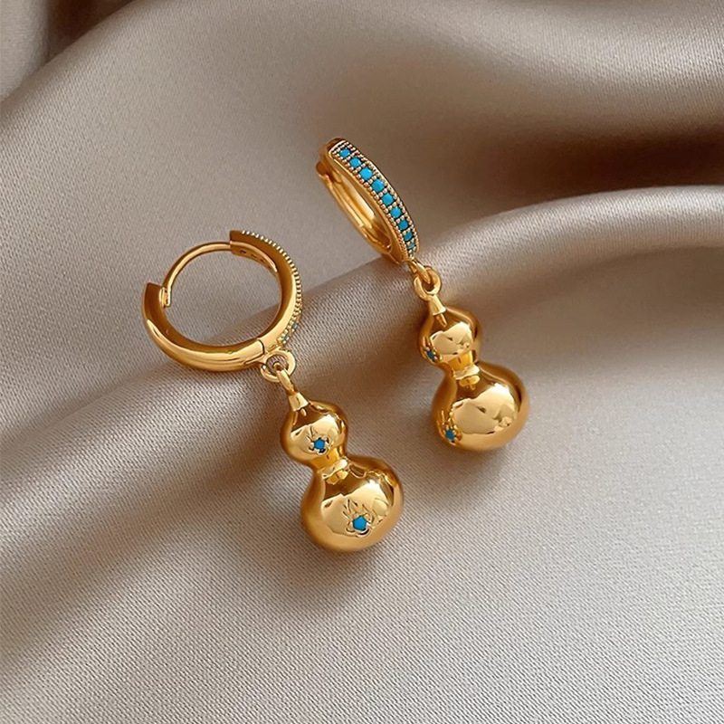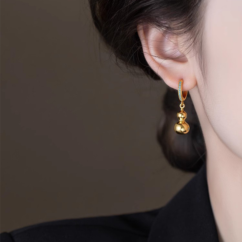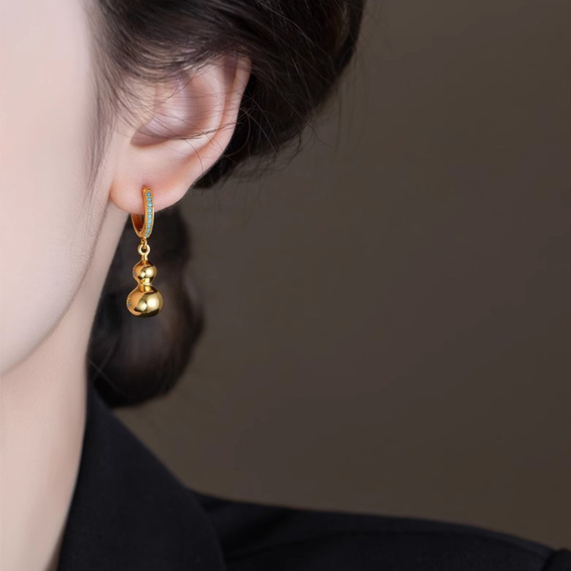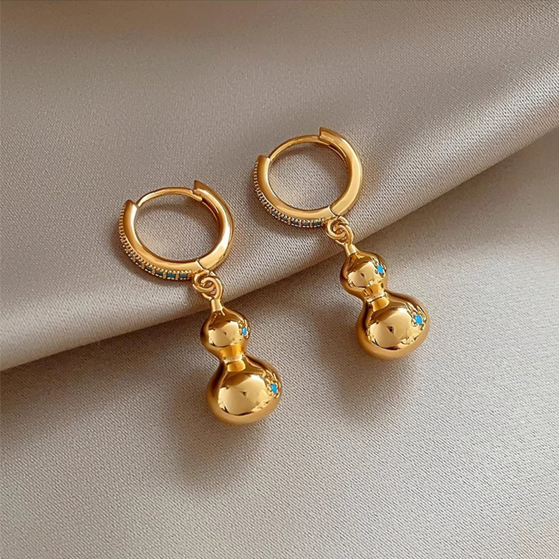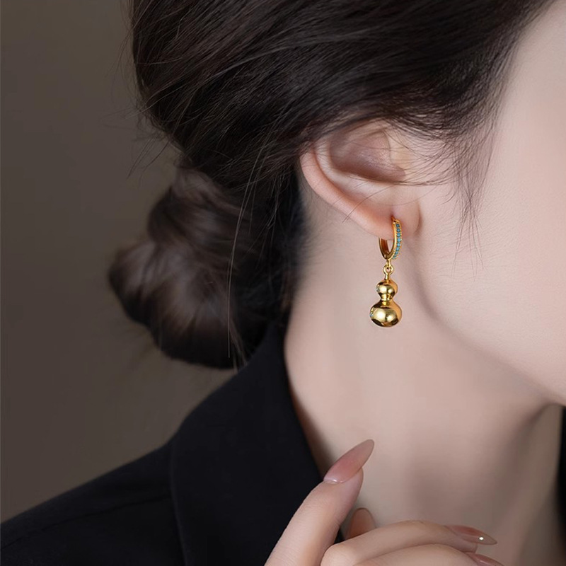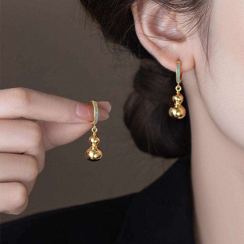 Product information:Color: real gold electroplated gourd earrings Applicable population: Female Material: Copper Shape: Flower Popular elements: gourd Style: affordable luxury style