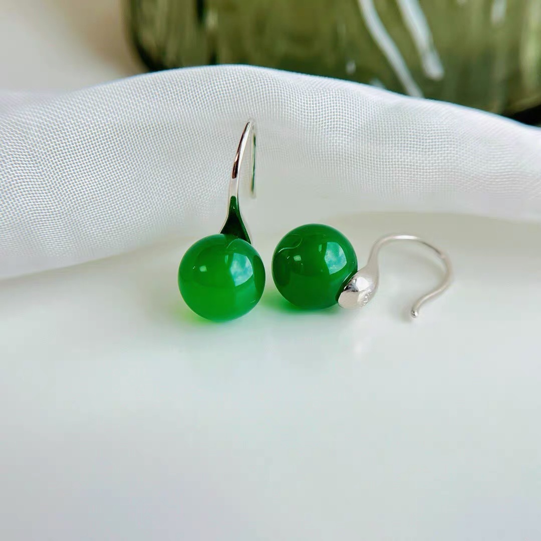 New S925 Sterling Silver High Heels Natural Green Chalcedony Earrings