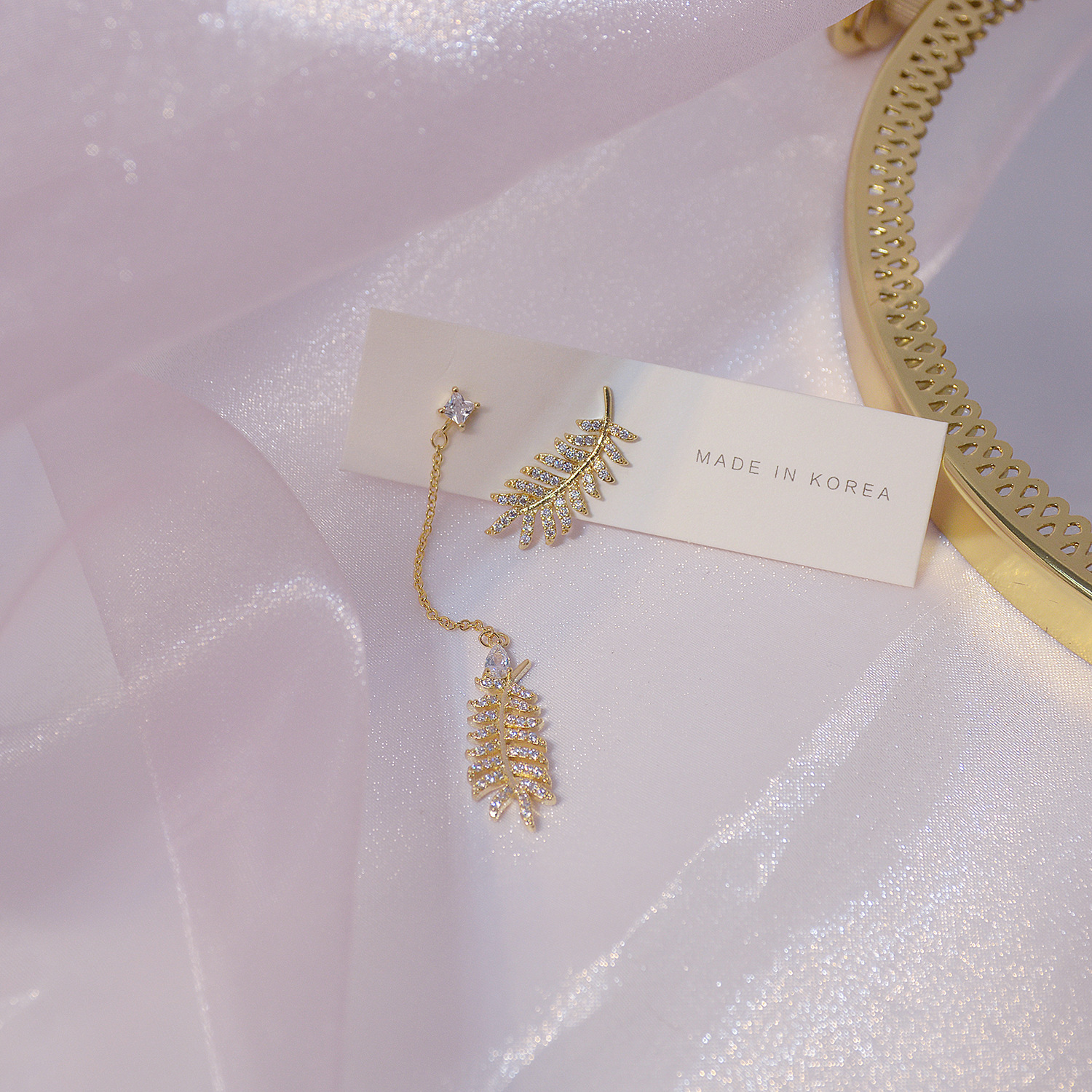 Asymmetric Feather Micro-Inlaid Zircon Full Diamond Temperament Long Earrings