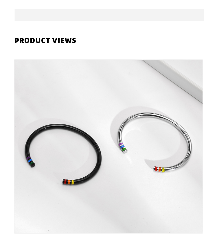 Material: Titanium steelApplicable gender: CouplesColor classification: Silver black Black + silverDirect: 6 mm * 60 mmOpening: 31 mm