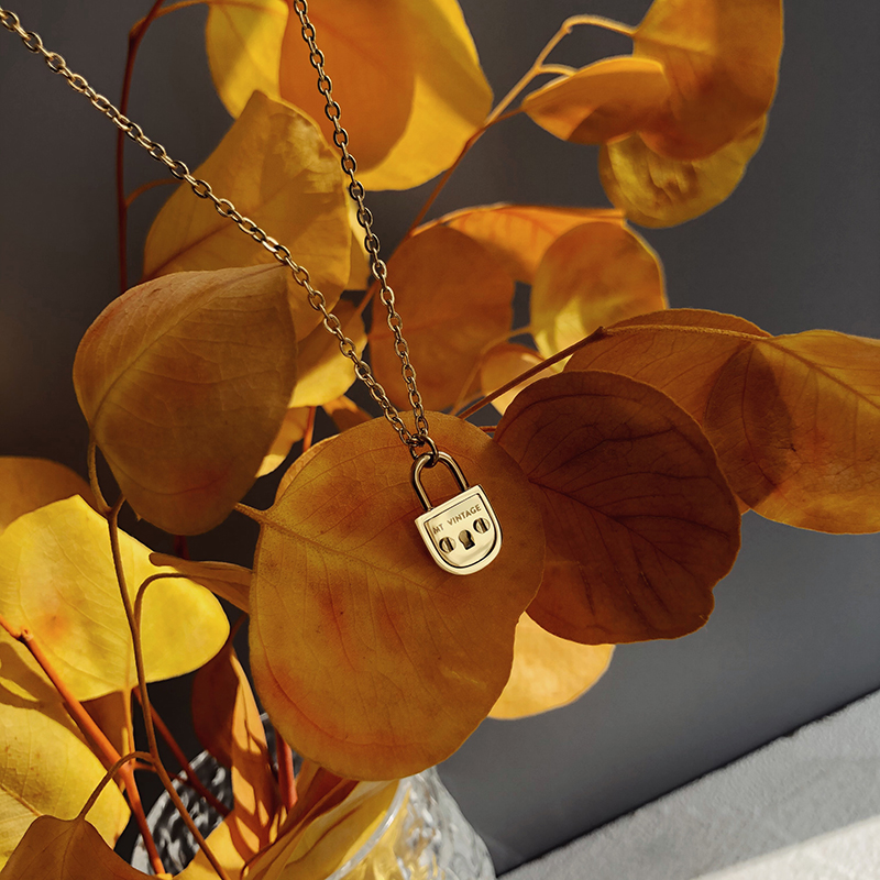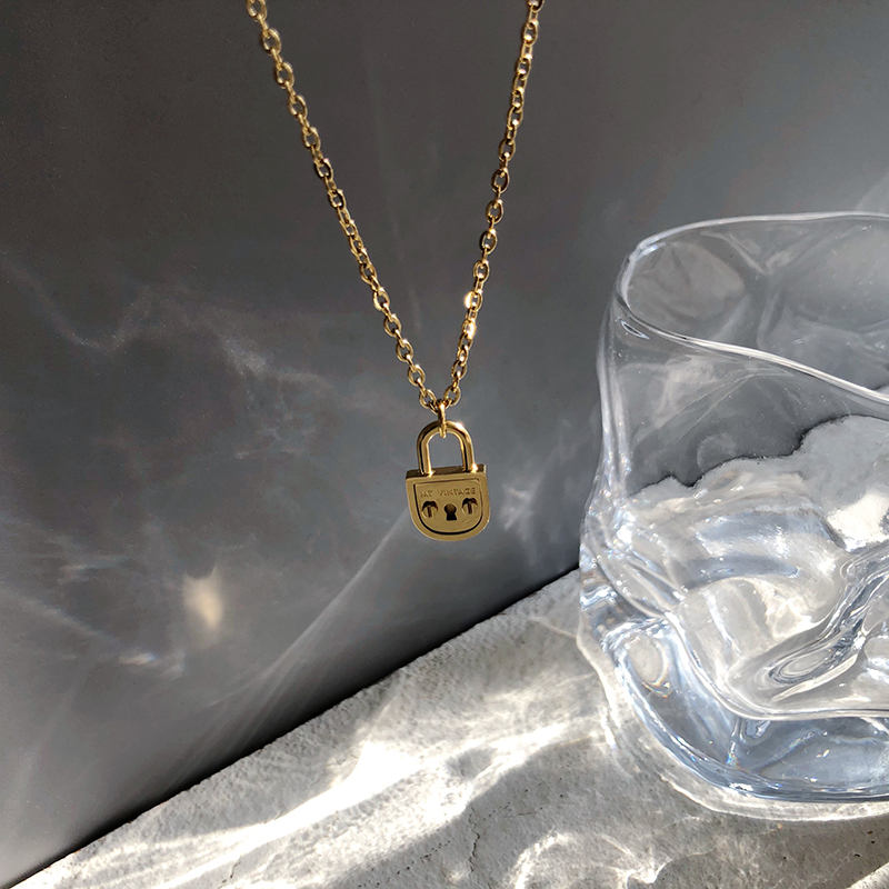 Vintage Small Lock Head Chain Keyhole Necklace Clavicle Chain