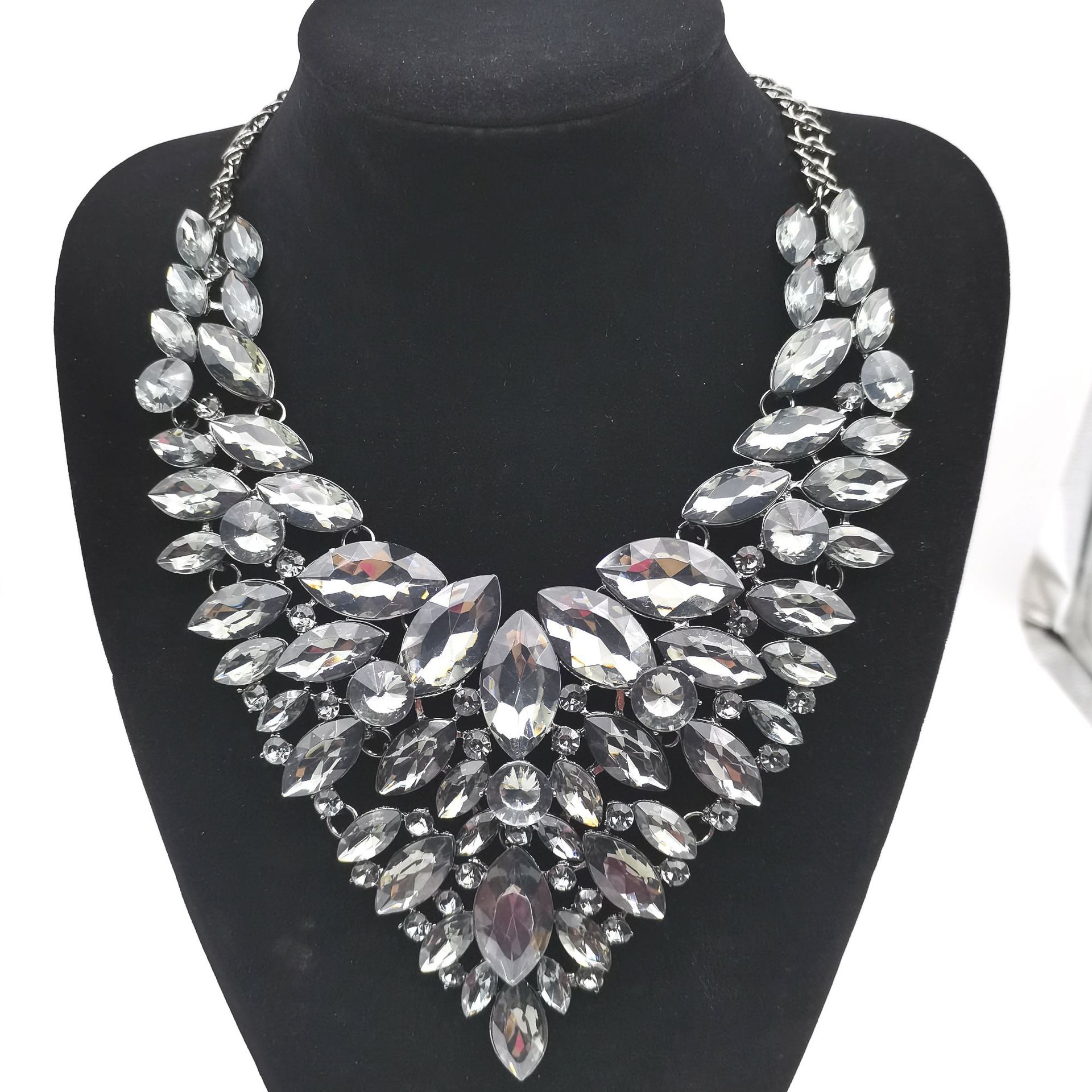 Product information:Treatment Process: Diamond Color: gold, gray Applicable population: Female Pendant material: artificial crystal Chain style: water wave chain Material: Alloy Size: circumference 44cm extension chain 7cm