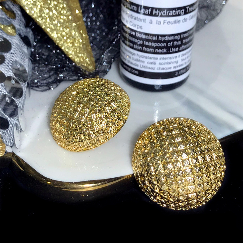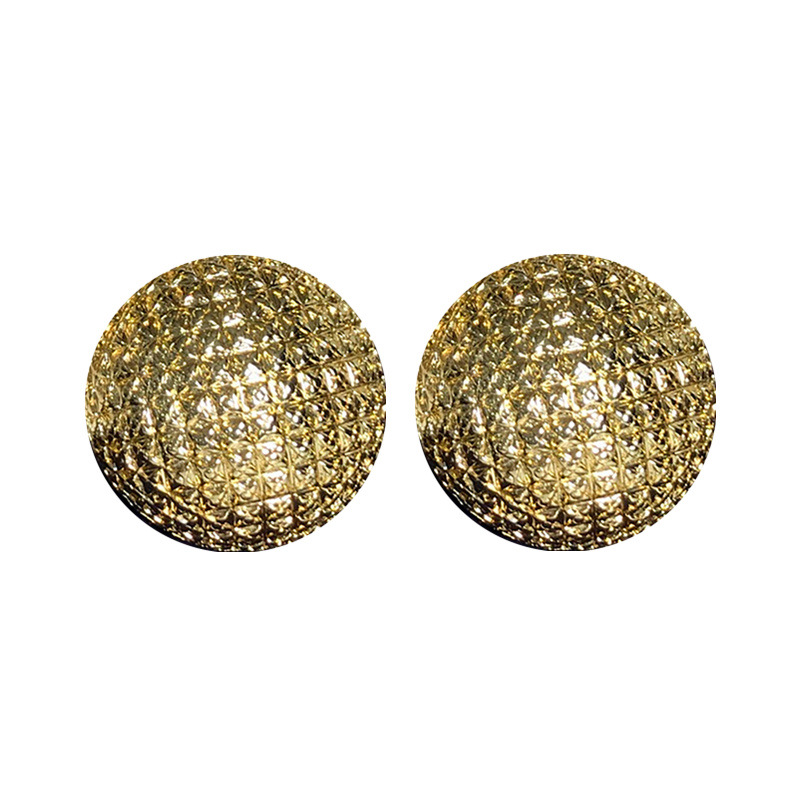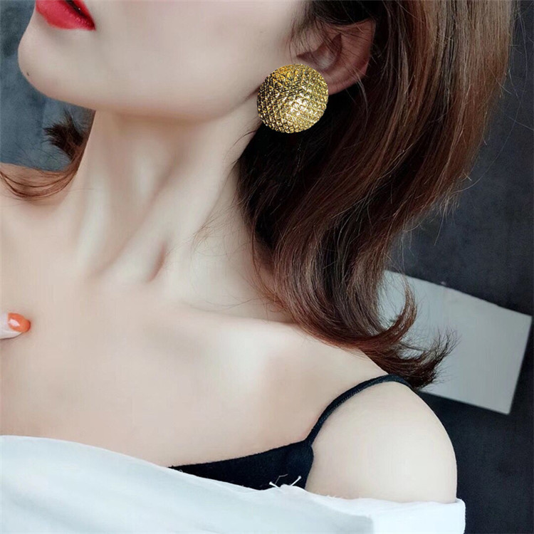 Silver Needle Metal Semicircle Diamond Plaid Large Stud Earrings