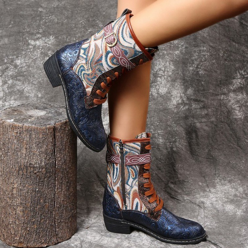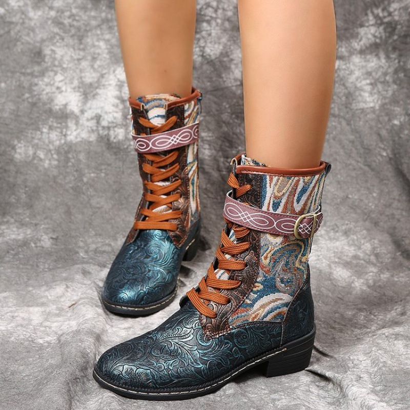 Retro Embroidered Ethnic Style Square Heel Martin Boots