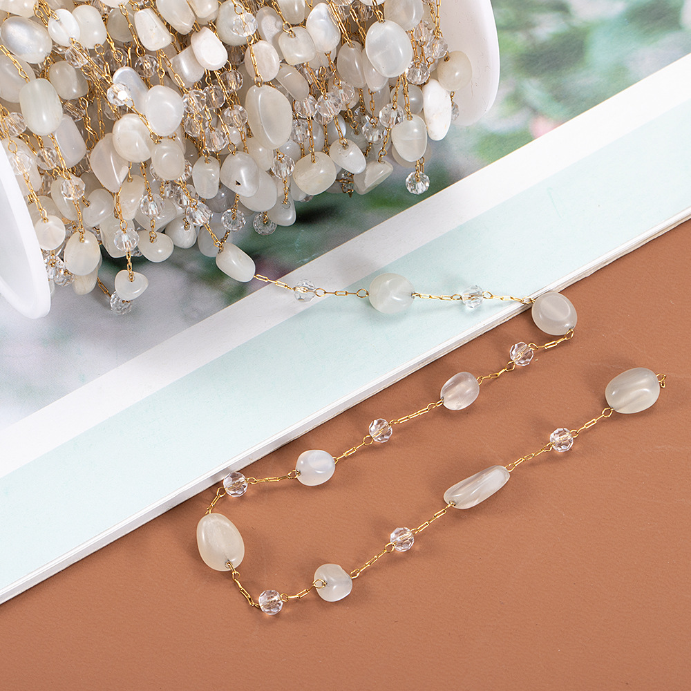 Product information:Type: diy ornament accessoriesTreatment Process: ElectroplatingColor: white/19.84g, mixed color/15.56g, purple/15g, Green/15gMaterial: stainless steel, CrystalSize: smallPopular elements: chain, asymmetryStyle: Mori style