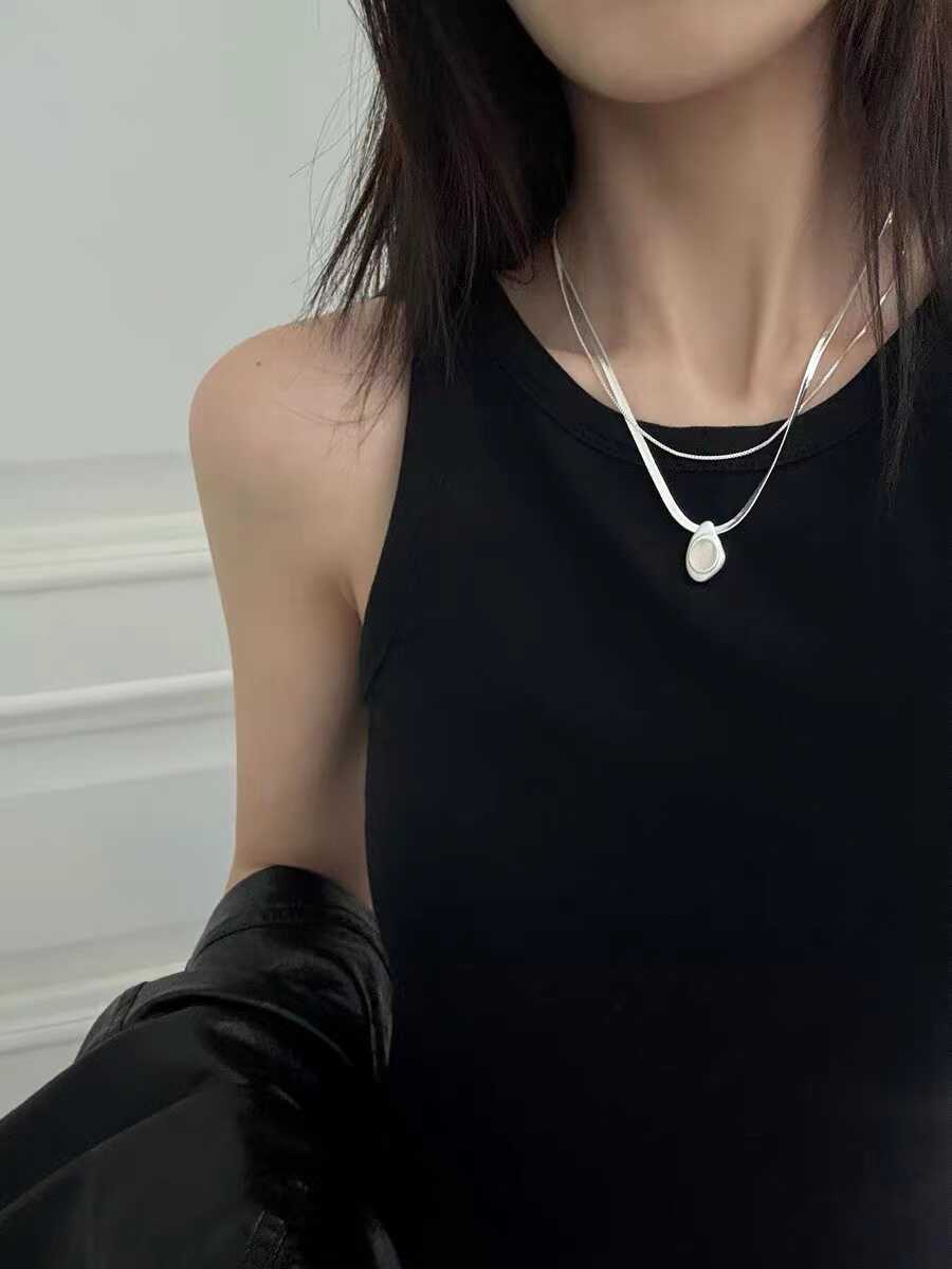 Product information:Color: silver necklaceApplicable people: womenPendant material: mixed gem inlaidChain style: snake bones chainMaterial: silver platedPurity: MShape: GeometricPopular elements: quadrilateralStyle: chic style