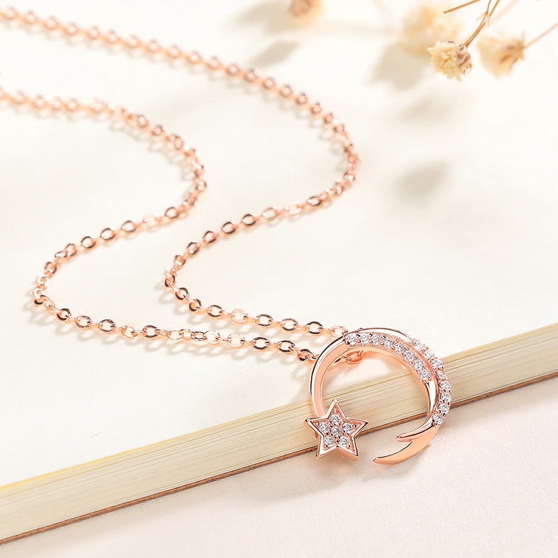 Star Geometric Moon Pendant Necklace