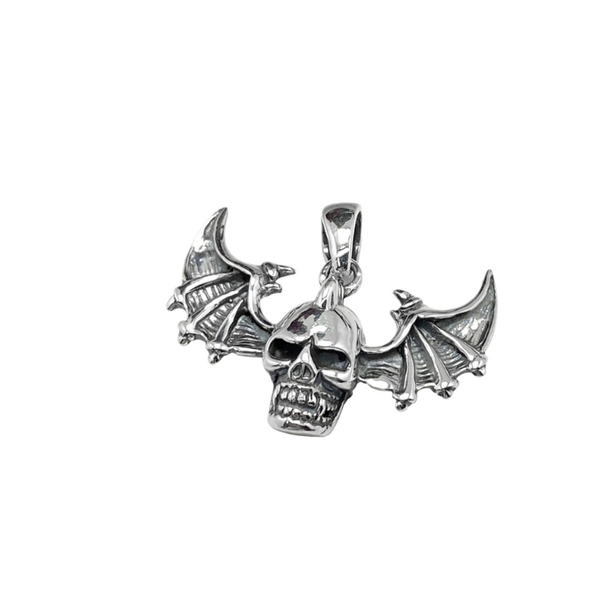 925 Sterling Silver Gothic Bat Wings Skull Pendant