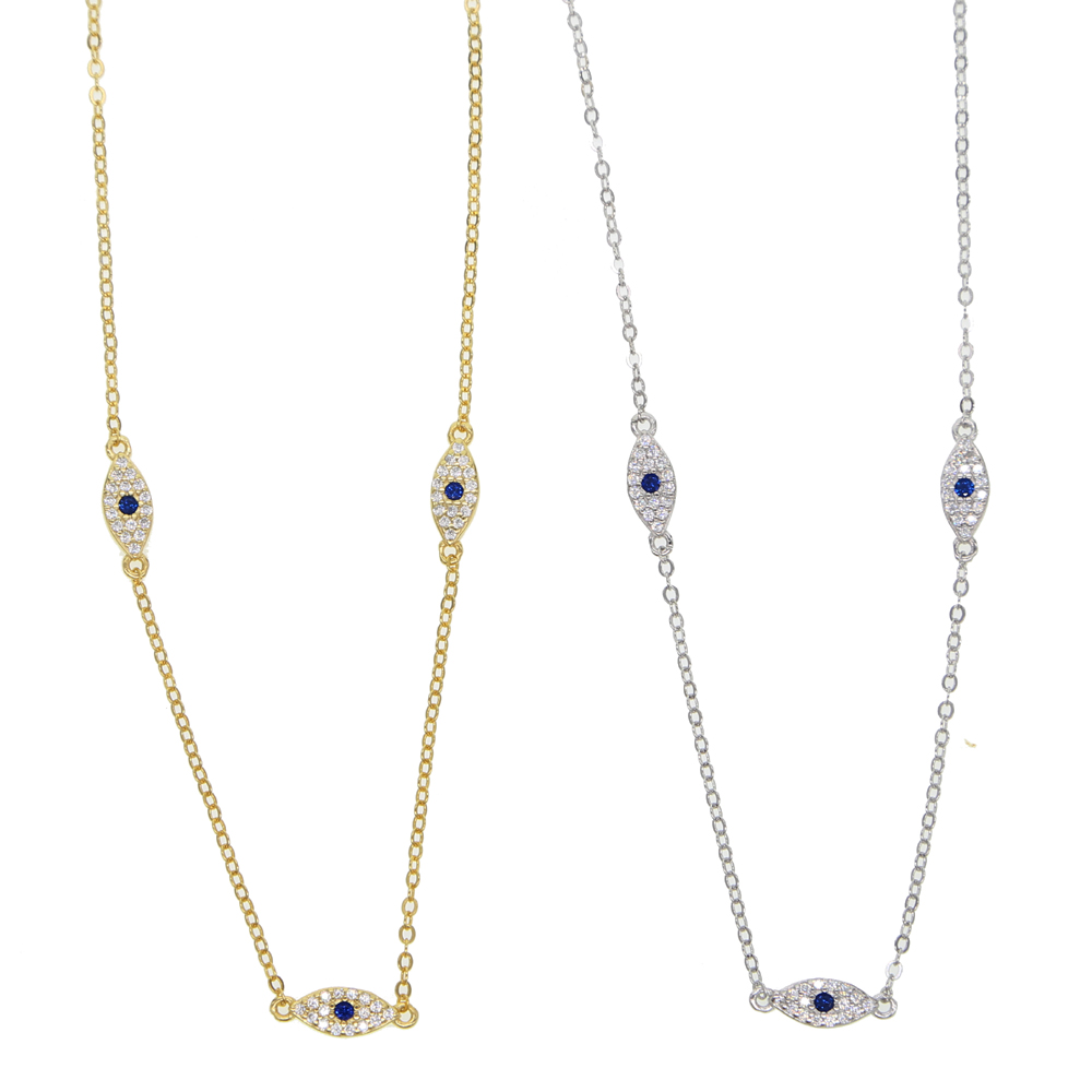 Guarantee 925 Sterling Silver Blue Zirconia Evil Eye Necklack